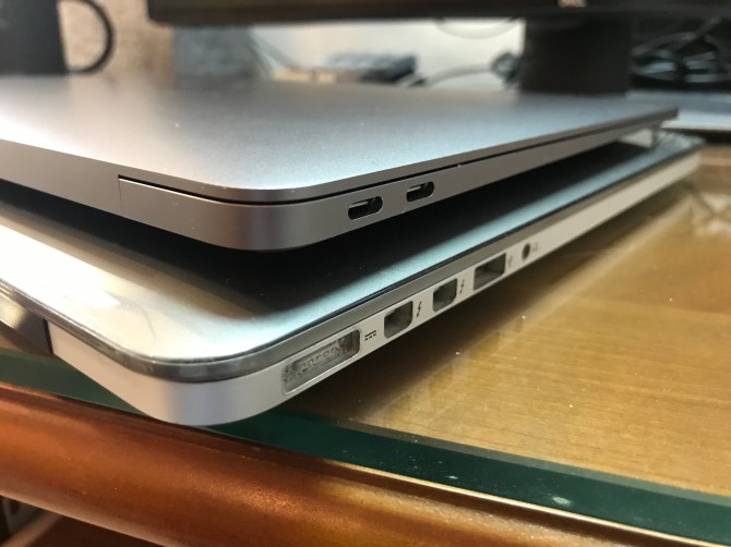 有,自從2016大改USB/thunderbolt,就沒有SD slot、 USBA、HDMI。一定要帶USB-C hub,缺乏足夠IO,則降低使用便利性、增加購機成本。還好做功課後,找了一個穩定、VGA、SD、microSD、USB-A、乙太網路、充電USBC的全能hub,只是習慣要重新建立而已。