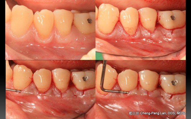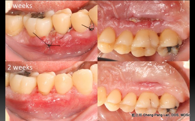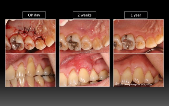 因為幫學會上課,藉由這次機會,整理了五個長期案例,至少八年到十二年的追蹤。觀察照片,移植角化上皮,經過長年觀察,粗略估計,一年後就很穩定,且多年後,萎縮量沒有很多,蠻平穩的。