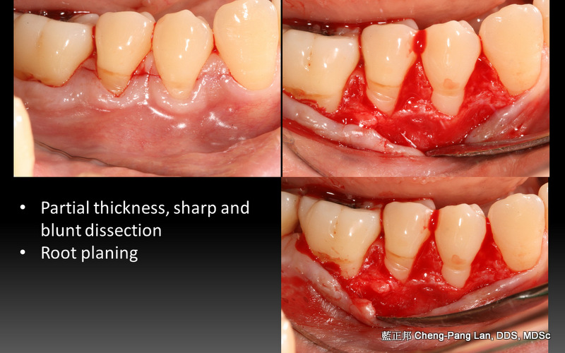 一開始的Partial Thickness皮瓣移動,只須刀片劃開表層,其餘用鈍器械推下去。跟Tension free flap release這篇的手法類似。意即,切得少,推得多。