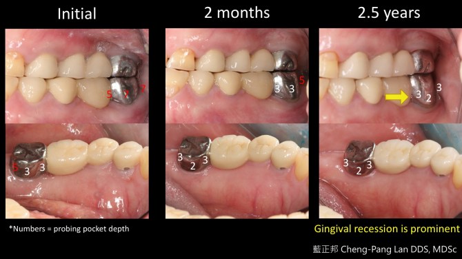 例如,36歲男性,不菸且身體健康。口腔衛生不錯,也無明顯結石與紅腫,但囊袋深及7~8mm,搖晃度頗高,隱約是一個困難案例。