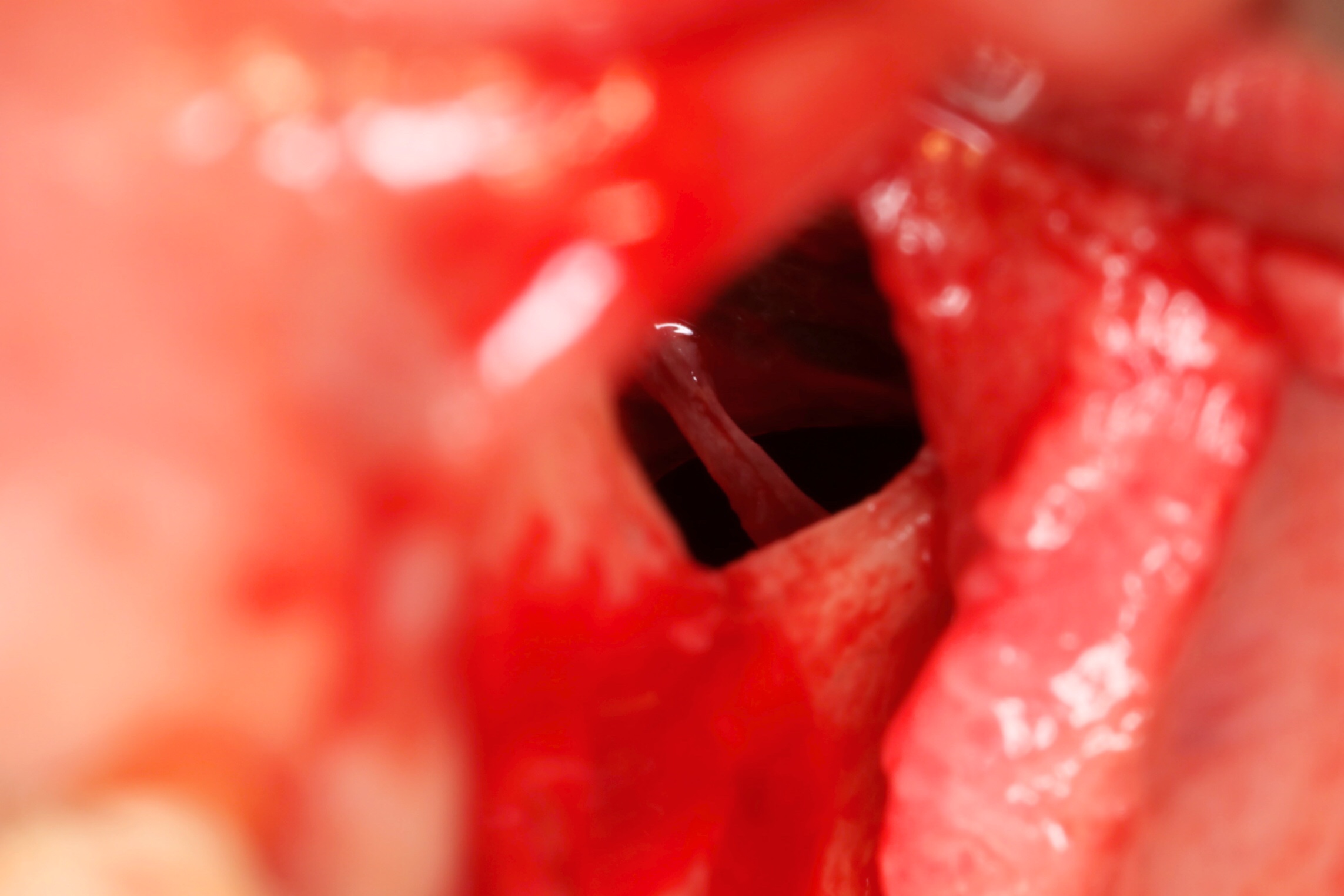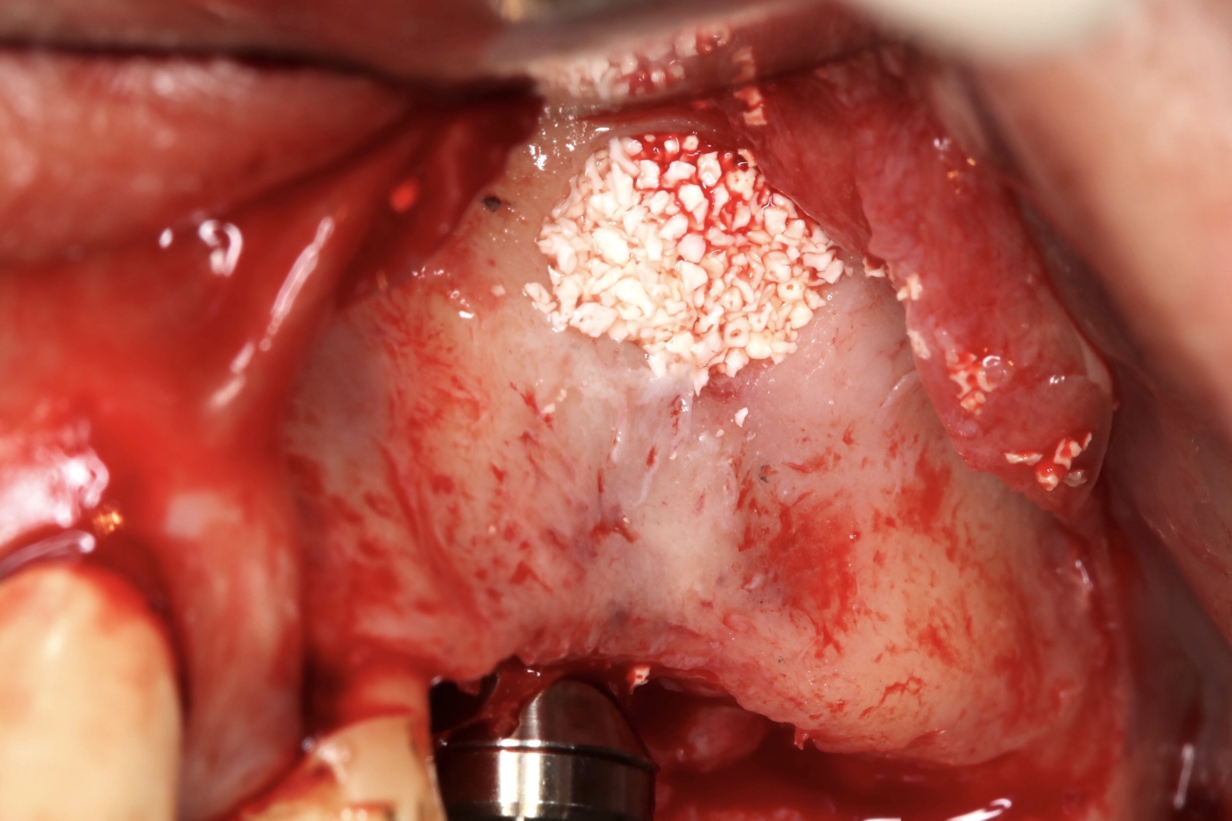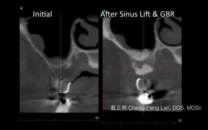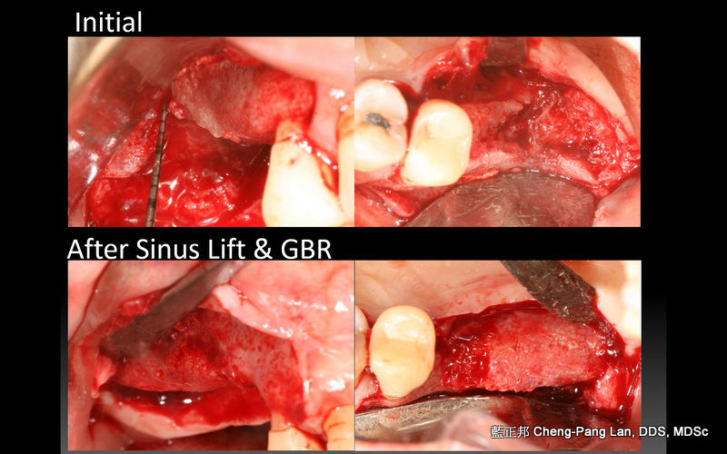 這也是我第一次嘗試在自然牙底下增高鼻竇,運氣不錯,自然牙底下的鼻竇質地平緩,只有顎側牙根稍有起伏,這也事先在3D模擬就知道,所以翻膜過程也不會感到驚訝與挫折。